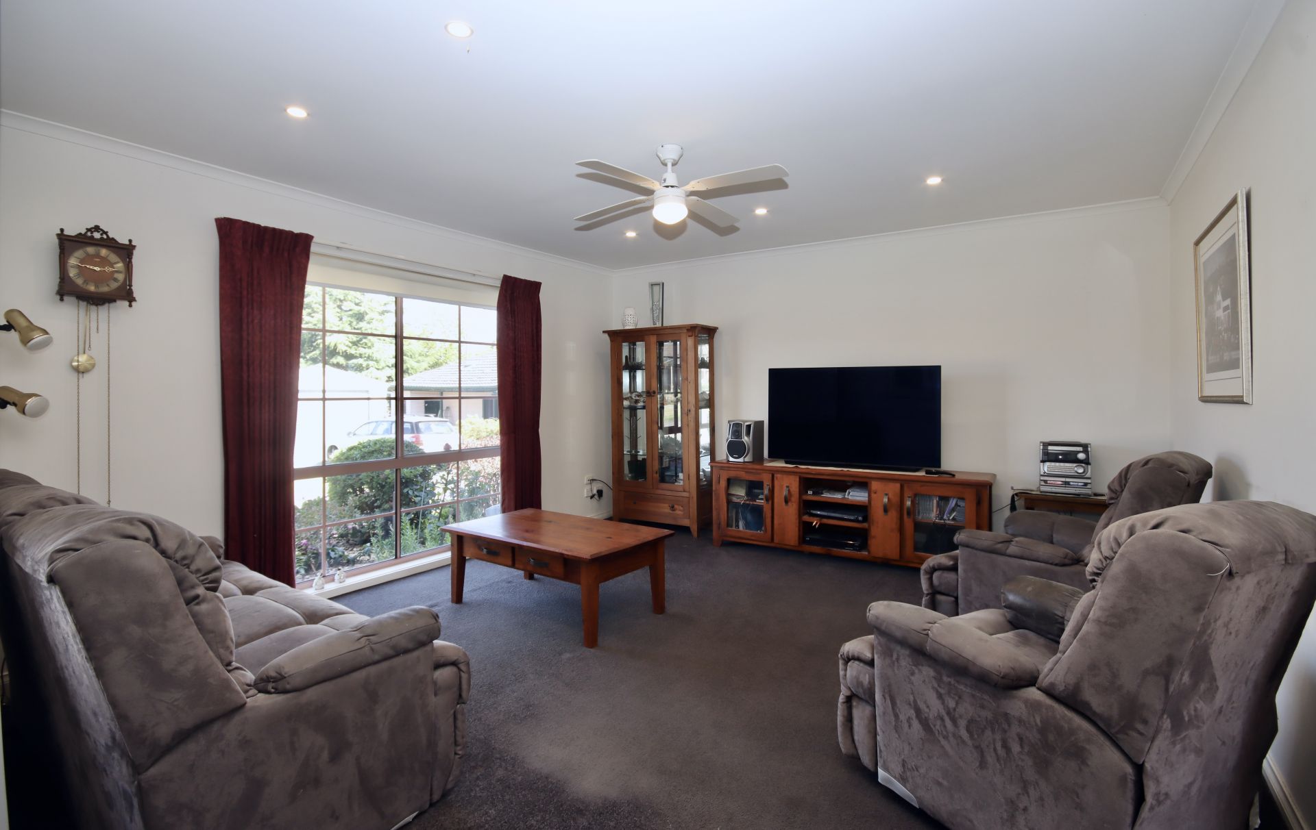 A large lounge filled with natural light flows through to the well appointed kitchen.