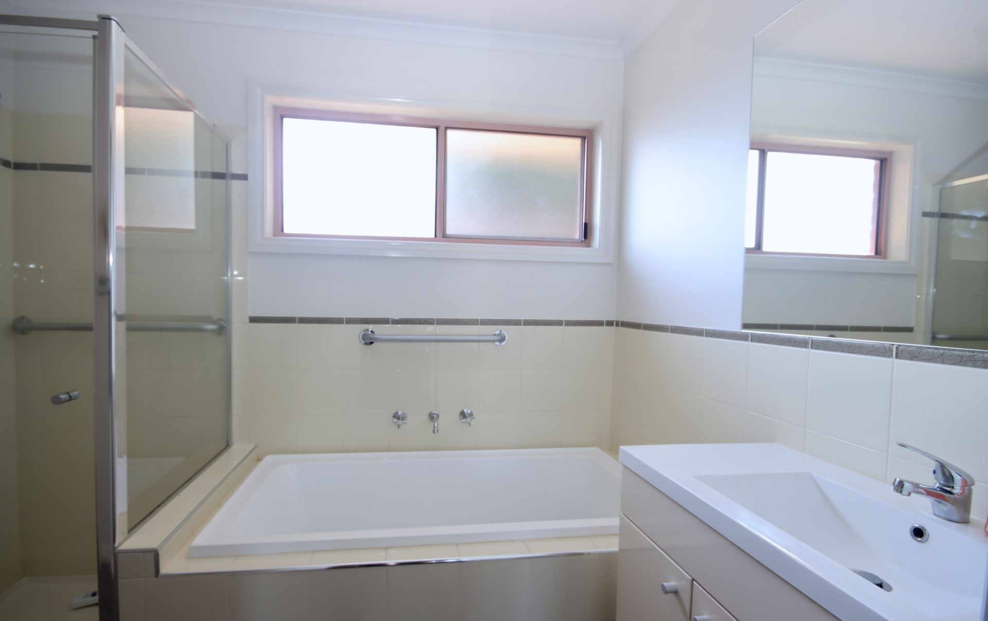 Two generous bedrooms, the master with split a/c and Walk through to the bathroom and the 2nd with built in robe.