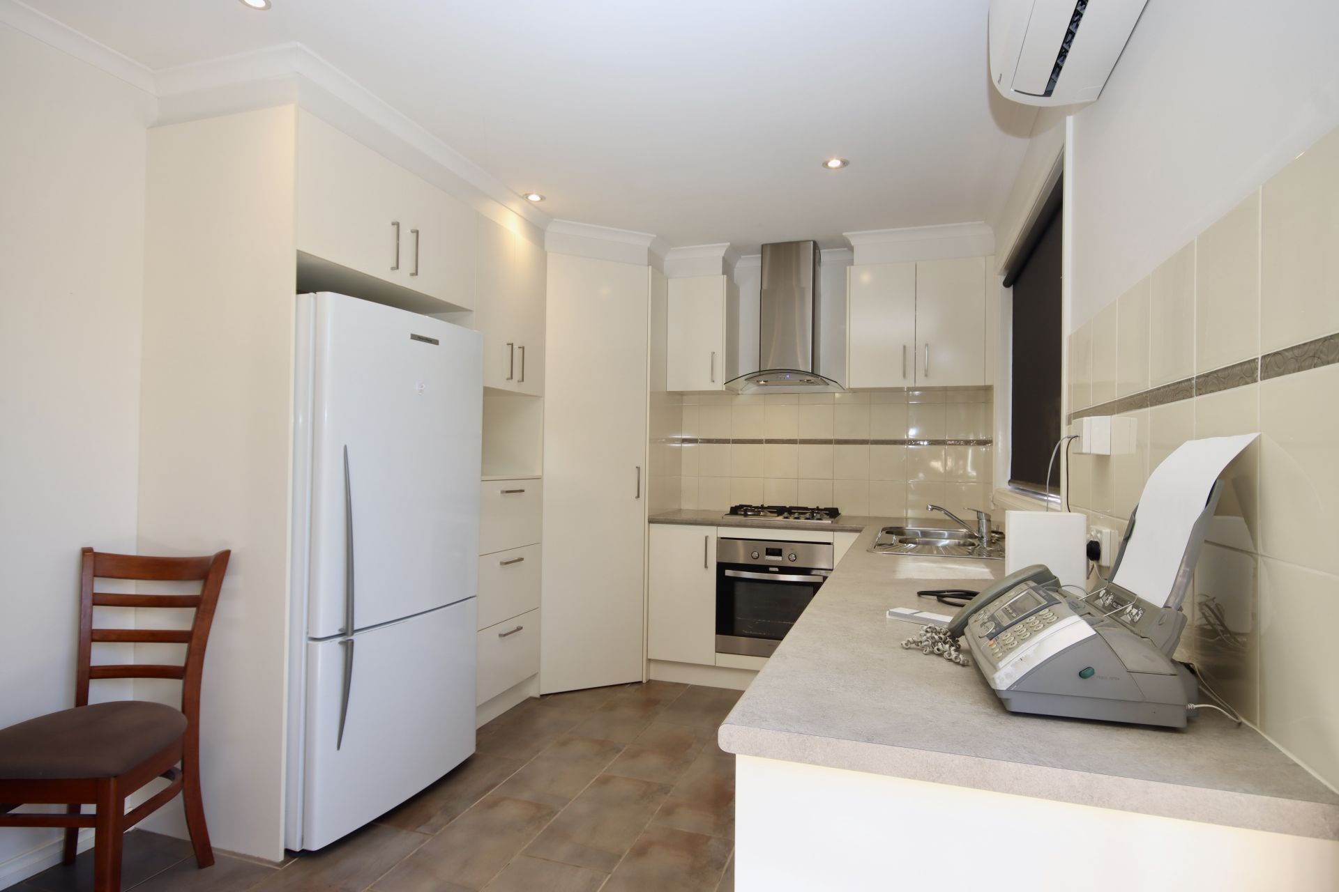 Loads of cupboard and bench space for meal prep. The kitchen opens out to the yard via double sliding glass doors for entertaining in a generous size yard. A split system for heating and cooling and a gas wall furness is in the living areas.