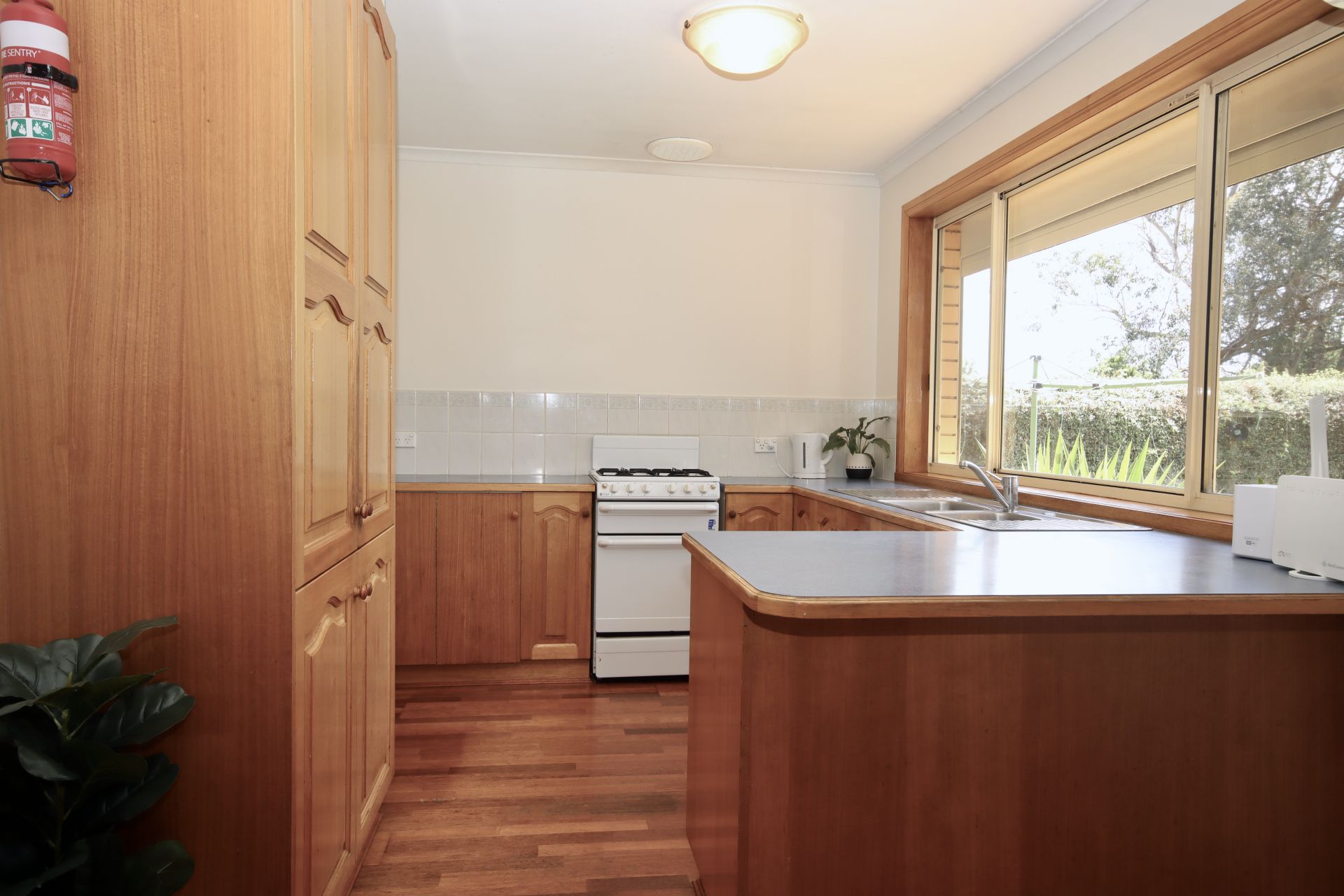 A split a/c unit and ceiling fans also assist with climate control.
