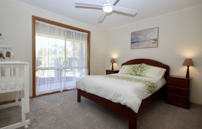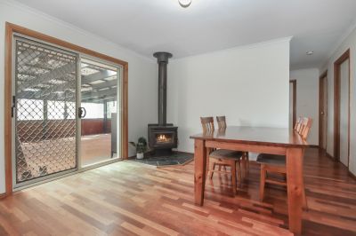 Each bedroom is thoughtfully designed with built-in robes, while the principal bedroom indulges its occupants with a walk-through robe and an ensuite, providing a private sanctuary away from the hustle and bustle. The heart of the home features a timber kitchen with ample storage and double fridge space, complemented by a spacious lounge that's warmed by a Coonara style wood heater, creating a cosy atmosphere during the cooler months.