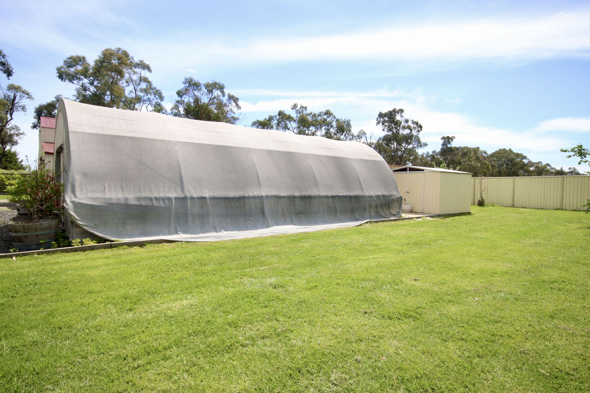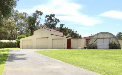 The property is freshly painted and designed for security, equipped with remote shutters and sec doors. Outbuildings include a commercial size hothouse, multiple sheds, and a wood storage facility, complemented by a large barn shed with a mezzanine to the middle section at rear, promising ample storage and workspace. (Hoists that are fitted are separately negotiable to the sale)