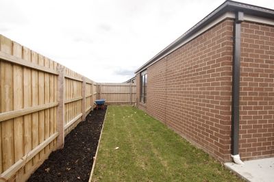 The yard is low maintenace with concrete down one side.
